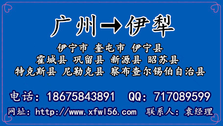 廣州到新疆伊犁物流廣州鑫富物流有限公司,電話:020-87461290 ,手機:18675843891 ,QQ:717089599 聯系人:袁經理,為廣大新老客戶提供優質廣州到新疆伊犁物流專線及配送服務,歡迎來電咨詢,鑫富物流公司在珠三角的深圳、佛山、珠海、東莞、中山、惠州、江門、肇慶都可以上門提貨,貨到新疆伊犁可以送貨到各鄉鎮及偏遠地區,讓客戶方便收貨,鑫富國家AAA物流企業–貨運一站式解決方案。